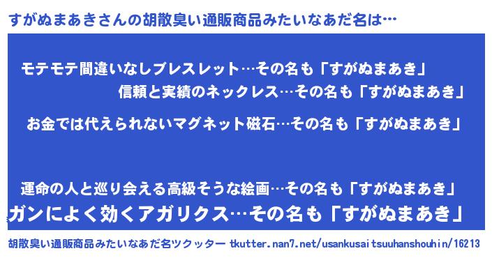 | 欧米人風あだ名 | 『トリンドルすがぬまあき』 |