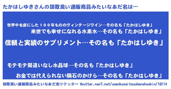 | 意味不明あだ名 | 『とにかく怪しいたかはしゆき』 |