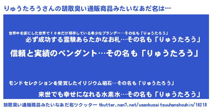 | 意味不明あだ名 | 『とにかく怪しいりゅうたろう』 |