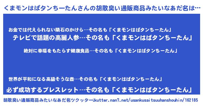 | ヘコむあだ名 | 『くまモンはばタンちーたん(苦笑)』 |