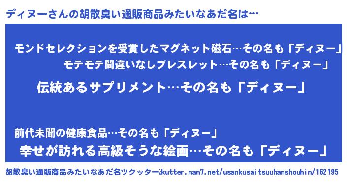 | 意味不明あだ名 | 『とにかく怪しいディヌー』 |