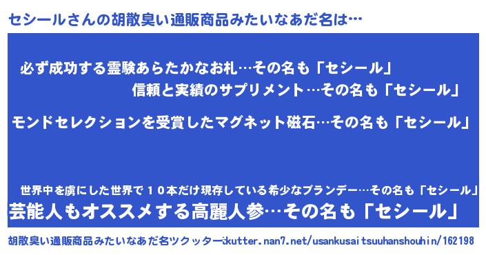 | ヒーロー風カッコイイあだ名 | 『天空の使者セシール』『魔戒騎士セシ』 |