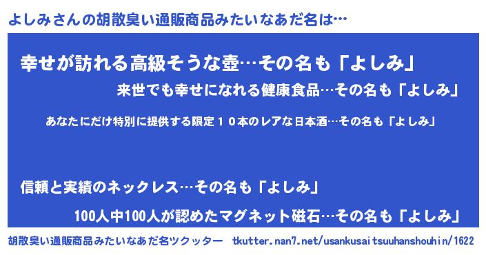 | 意味不明あだ名 | 『住所不定無職よしみ(50歳)』 |