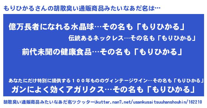 | ヘコむあだ名 | 『もりひかる(笑)』『もりにゅー』 |