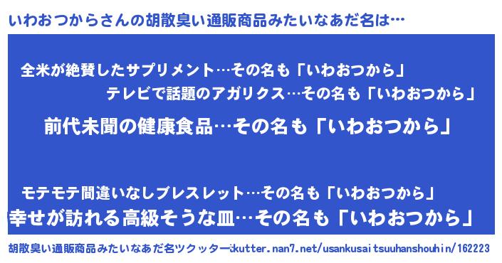 | 意味不明あだ名 | 『永久保存いわおつから』 |