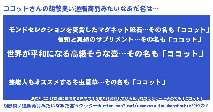 | 恥ずかしいあだ名 | 『ココっちょ』『ボンバーヘッドココ』 |