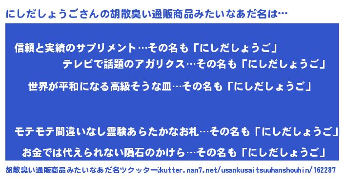 | 意味不明あだ名 | 『にしだしょうごフォーエバー』 |