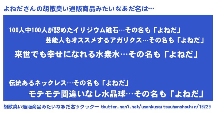 | 欧米人風あだ名 | 『ダルビッシュよねだ』『ダニエルよねだ』 |