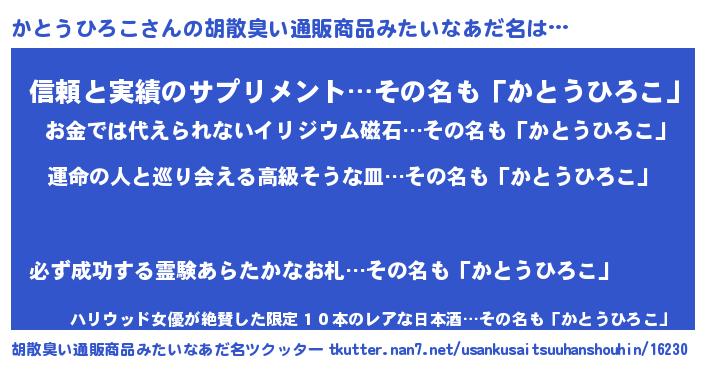 | ヒーロー風カッコイイあだ名 | 『ウルトラかとうひろこマン』 |