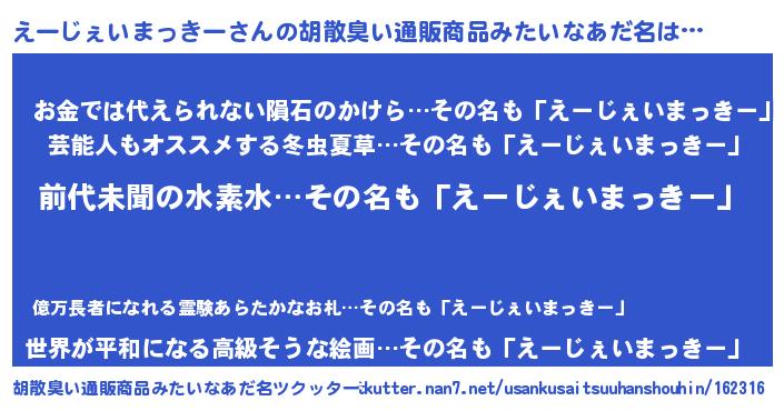 | 意味不明あだ名 | 『永久保存えーじぇいまっきー』 |