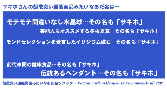 | ヘコむあだ名 | 『サキにゅー』『サキお』『レバニラ』 |
