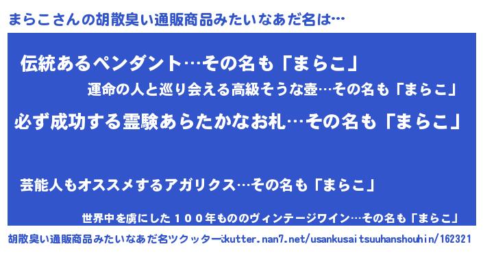 | 欧米人風あだ名 | 『アンジェラ・まらこ』『マイケルまらこ』 |