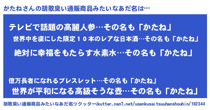 | 意味不明あだ名 | 『めかぶ科かたね属』『永久保存かたね』 |