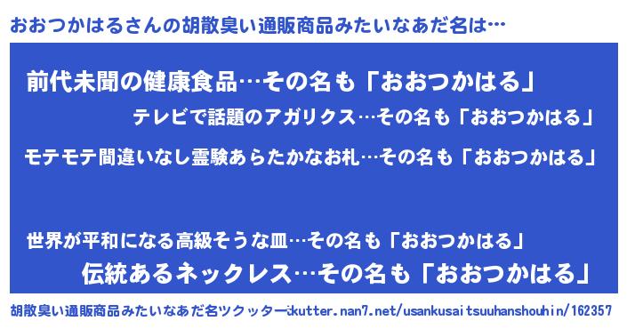 | 肩書あだ名 | 『おおつかはる中将』『おおつかはる店長』 |