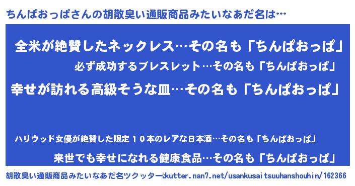 | ヒーロー風カッコイイあだ名 | 『ウルトラちんぱおっぱマン』 |