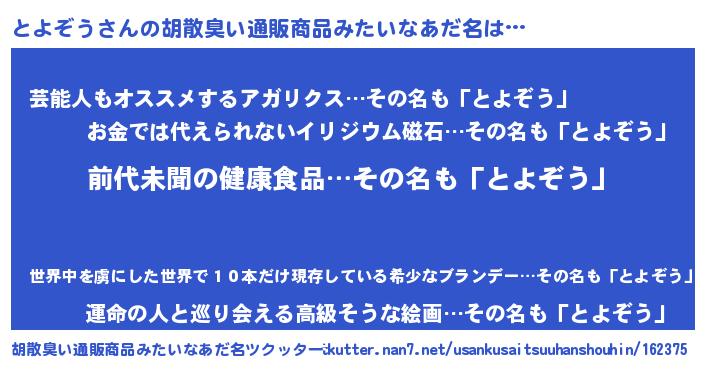 | 意味不明あだ名 | 『永久保存とよぞう』『自称とよぞう』 |
