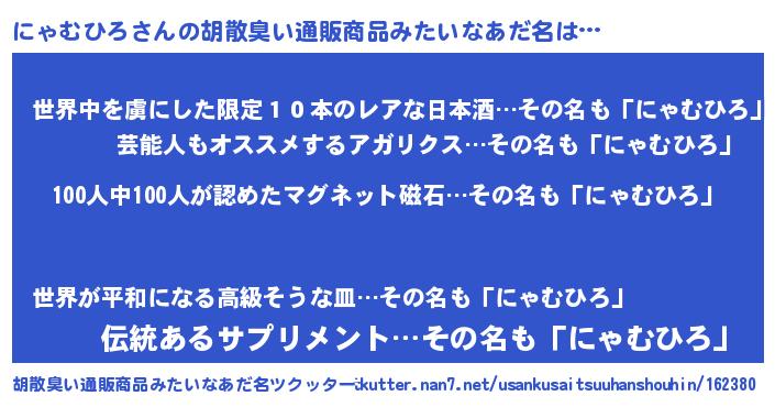 | 意味不明あだ名 | 『眠気覚ましガムにゃむひろ味』 |