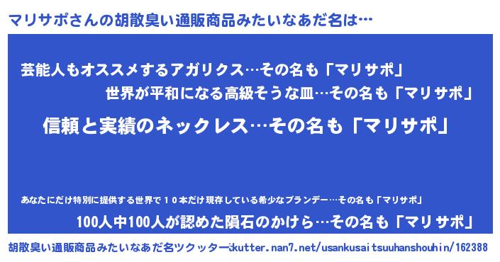 | 意味不明あだ名 | 『とにかく怪しいマリサポ』 |