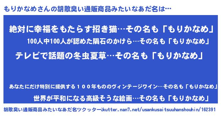 | 男性向けラノベタイトル風あだ名 | 『Re:もりかなめから始める異世界生活』 |