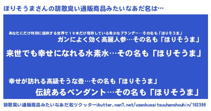 | 意味不明あだ名 | 『永久保存ほりそうま』『自称ほりそうま』 |