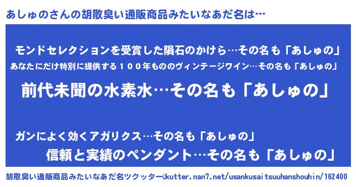 意味不明あだ名 | 『永久保存あしゅの』『自称あしゅの』 |