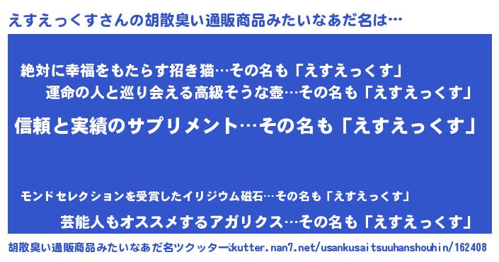 | 意味不明あだ名 | 『とにかく怪しいえすえっくす』 |