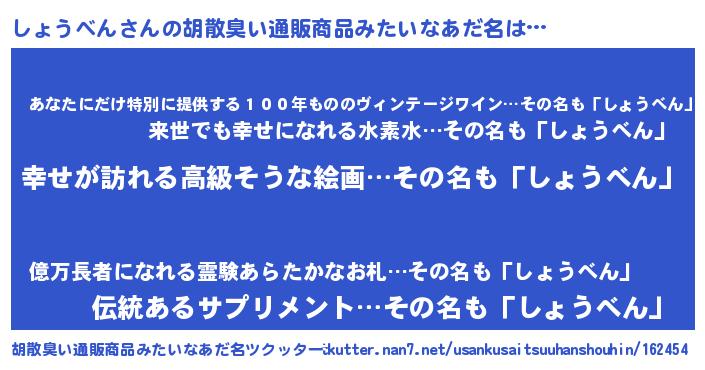 | 男性向けラノベタイトル風あだ名 | 『やはりしょうべんの青春ラブコメはまちがっている 』 |