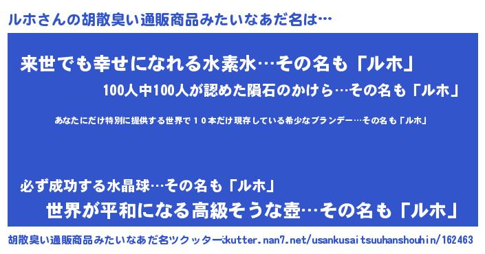 | 意味不明あだ名 | 『住所不定無職ルホ(98歳)』『永久保存ルホ』 |