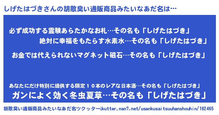 | ヘコむあだ名 | 『しげふぇ~』『しげたはづき(遠い目)』 |