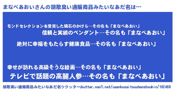 | 意味不明あだ名 | 『永久保存まなべあおい』 |