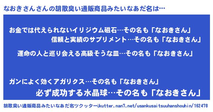| 意味不明あだ名 | 『なおきさんフォーエバー』 |