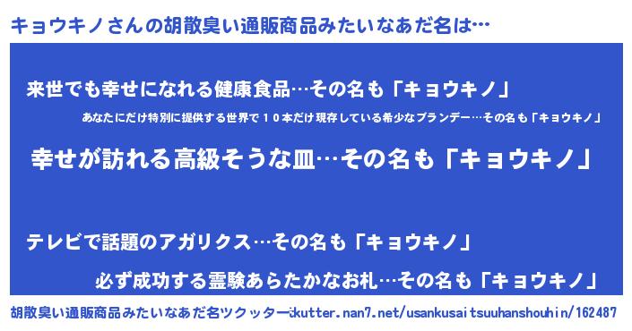キョウキノさんの胡散臭い通販商品みたいなあだ名をツクッター!