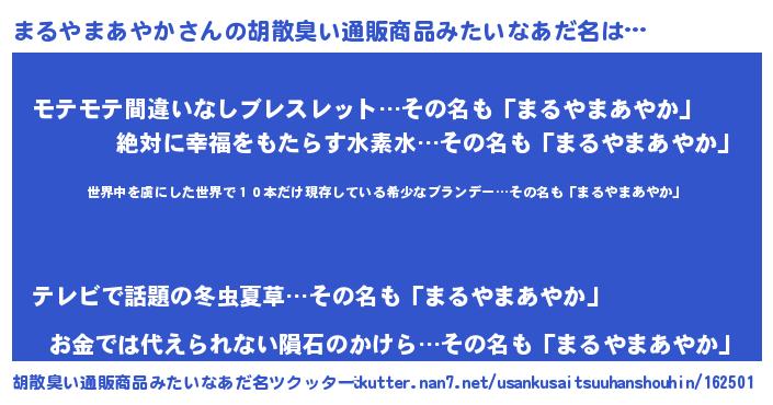 | 意味不明あだ名 | 『住所不定無職まるやまあやか(74歳)』 |