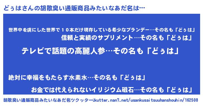 | ヘコむあだ名 | 『どぅお』『どぅは(苦笑)』『豆乳』 |