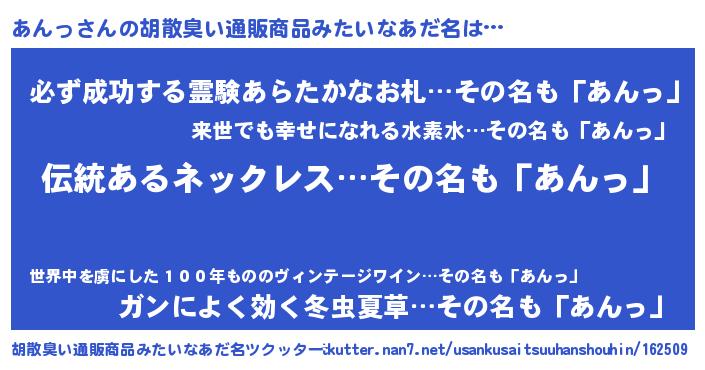 | 意味不明あだ名 | 『とにかく怪しいあんっ』『自称あんっ』 |