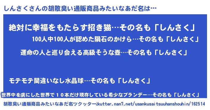 | 意味不明あだ名 | 『しんさくフォーエバー』 |