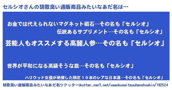 | 意味不明あだ名 | 『自称セルシオ』『なめこ科セルシオ属』 |
