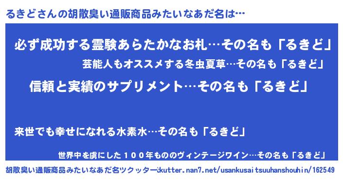 | ヘコむあだ名 | 『るきお』『るきもー』『るきど(笑)』 |