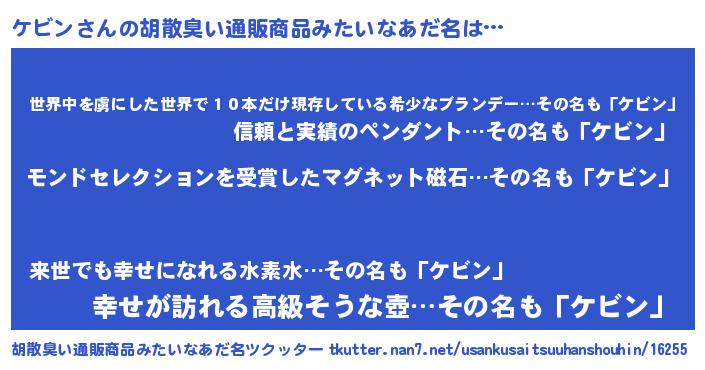 | ヒーロー風カッコイイあだ名 | 『天空の使者ケビン』『仮面ケビダー』 |