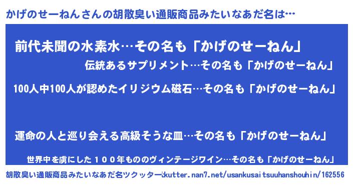 | ヘコむあだ名 | 『かげのせーねん(笑)』『かげっちょ』 |