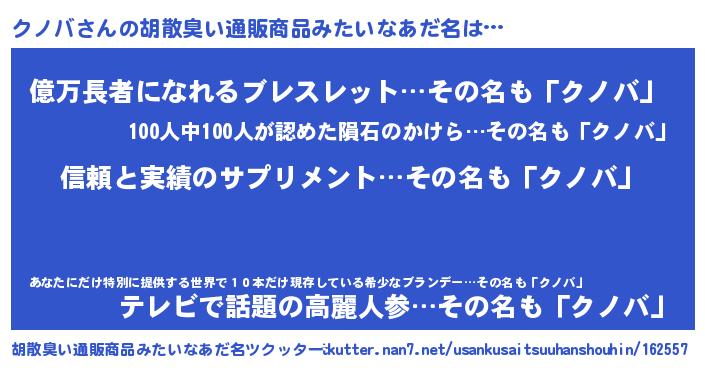| 意味不明あだ名 | 『とにかく怪しいクノバ』『自称クノバ』 |
