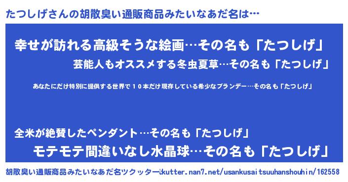 | ヒーロー風カッコイイあだ名 | 『仮面タツダー』『ウルトラたつしげマン』 |