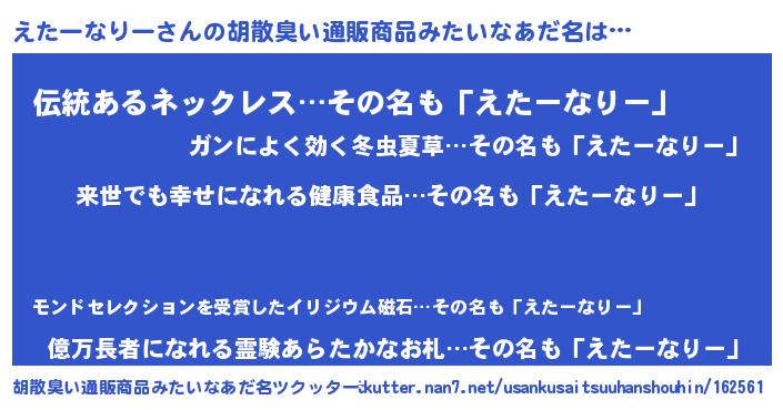 | 意味不明あだ名 | 『永久保存えたーなりー』 |