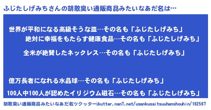 | 意味不明あだ名 | 『とにかく怪しいふじたしげみち』 |