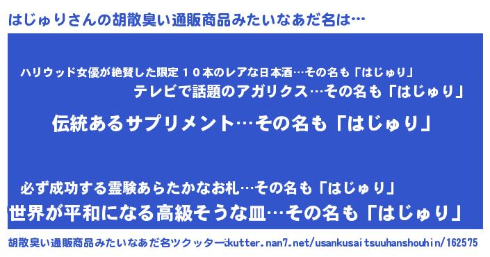 | 意味不明あだ名 | 『とにかく怪しいはじゅり』 |