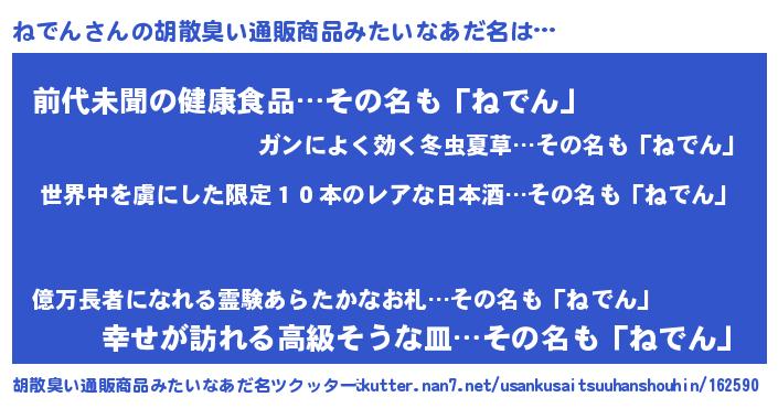 | 意味不明あだ名 | 『住所不定無職ねでん(43歳)』『自称ねでん』 |