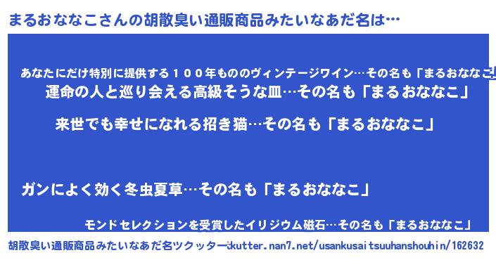 | 男性向けラノベタイトル風あだ名 | 『まるおななこという概念が存在しない退屈な世界 』 |