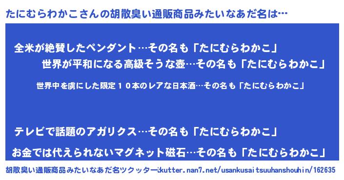 | 男性向けラノベタイトル風あだ名 | 『この素晴らしい世界にたにむらわかこを!』 |
