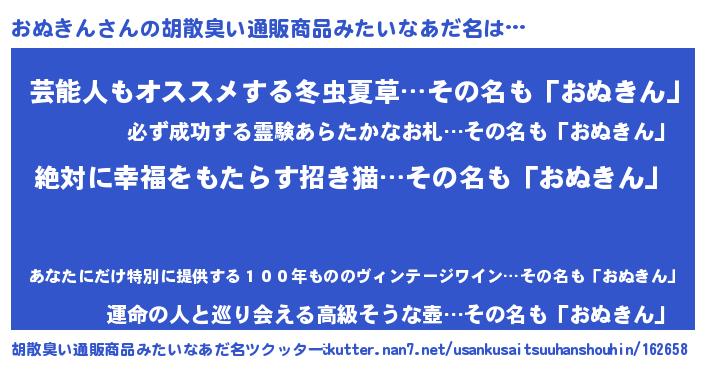 | 意味不明あだ名 | 『永久保存おぬきん』『自称おぬきん』 |