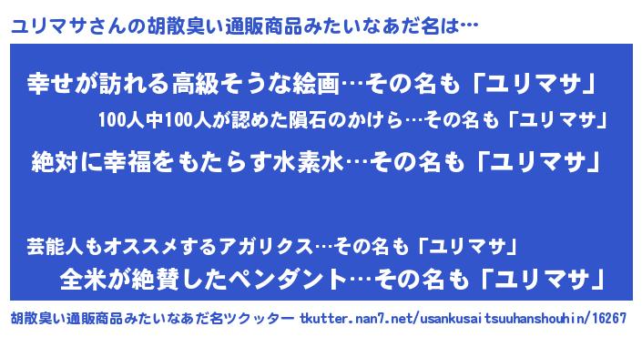 | ヘコむあだ名 | 『ユリマサ(遠い目)』『牛乳』 |